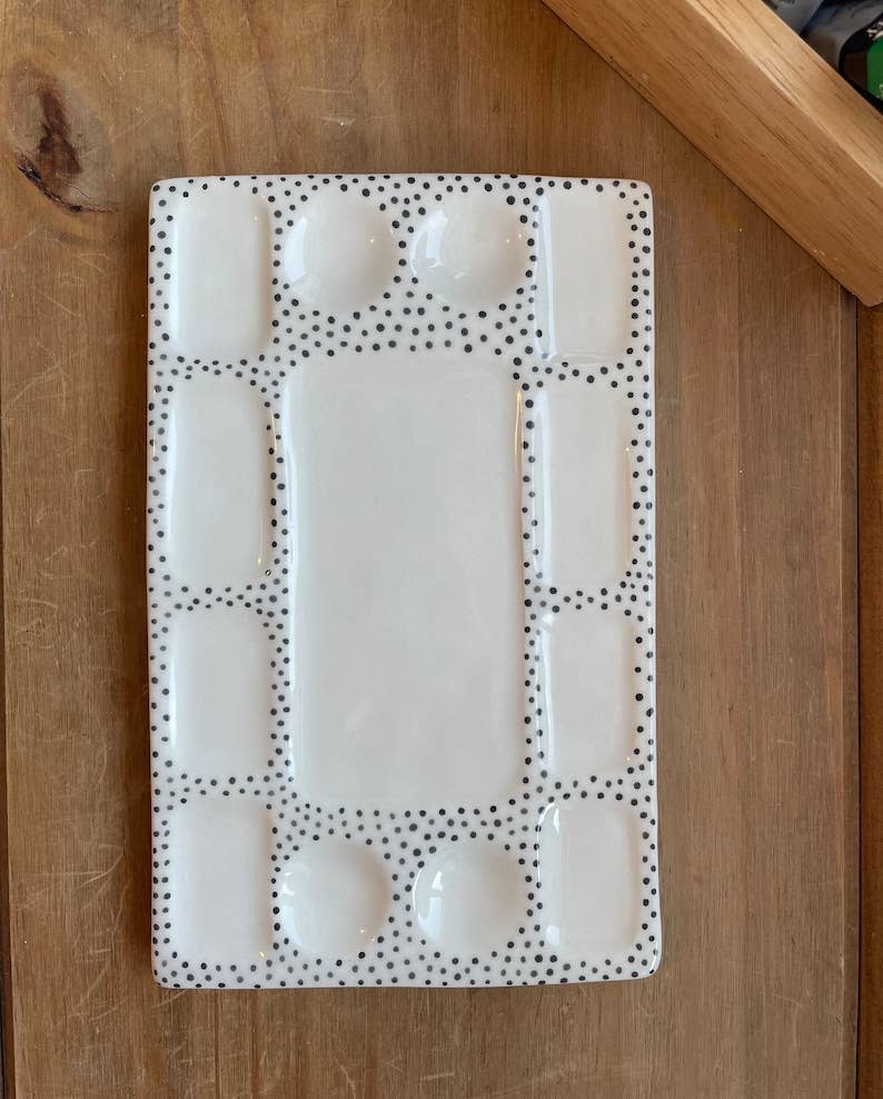 Een elegant keramisch verfpalet dat volledig met de hand is gemaakt. - Makkelijk schoon te maken - Ideaal voor aquarel-, gouache- en acrylverf. - Milieuvriendelijk keramisch materiaal en niet-giftig glazuur - Een geweldig cadeau voor vrienden of knutselliefhebbers. Lengte 18,3 cm Breedte 11,3 cm Hoogte van het palet: 1 cm Let op: deze artikelen zijn handgemaakt en de maat kan iets afwijken Voor een alternatieve keramische paletset, zie de link https://www.etsy.com/uk/MuddyCeramicArt/listing/1182310337/ceramic-paint-palette-set-watercolor Retourzendingen worden geaccepteerd