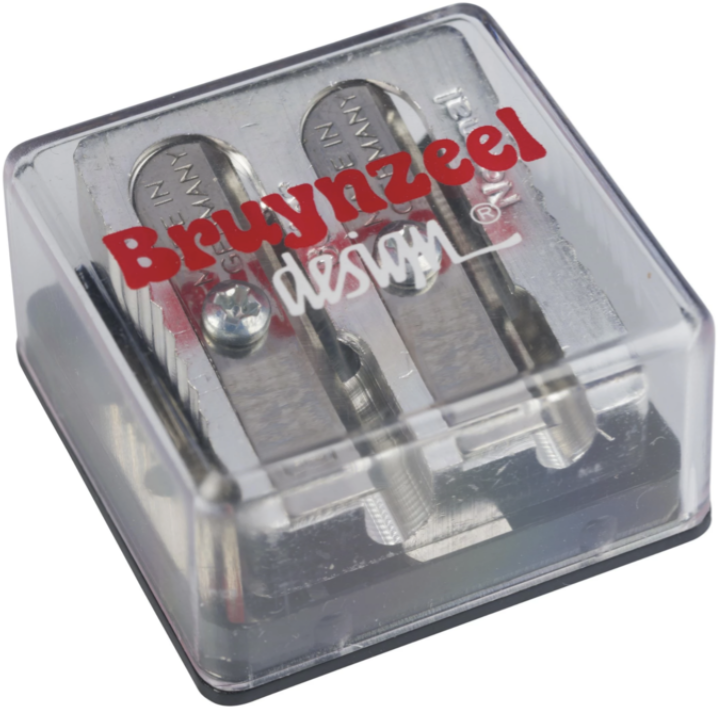 Deze duo-puntenslijper voor kleurpotloden en grafietpotloden is verpakt in een mooi doosje van Bruynzeel. Zeer goede kwaliteit ligt goed in de hand. Inclusief reserve mesjes, dus echt voor levenslang gebruik! Wil je meer weten over de verschillen in puntenslijpers? Klik dan hier